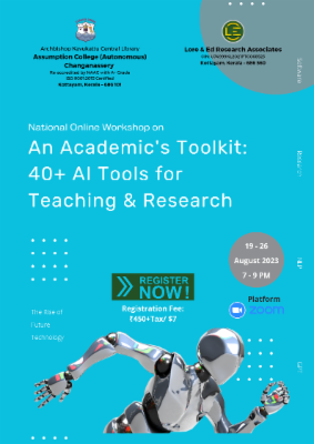 Archbishop Kavukattu Central Library, Assumption College (Autonomous) Changanassery in association with Lore & Ed Research Associates organises 8-day national online workshop on An Academic's Toolkit: 40+ AI Tools for Teaching & Research.